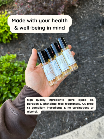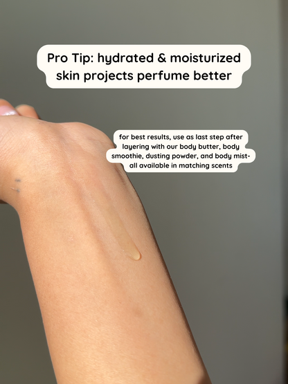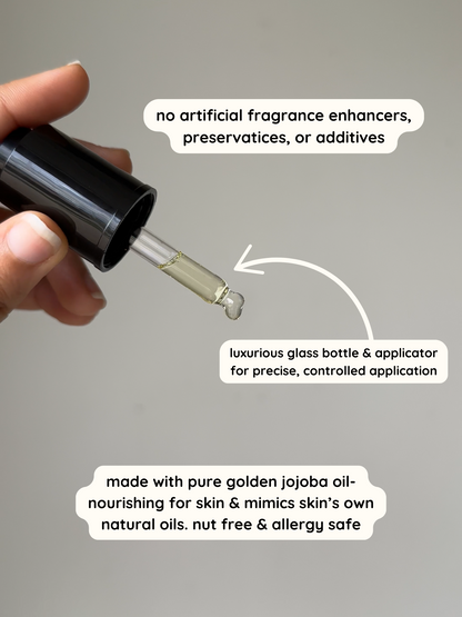 Our ultra-concentrated, extrait-level perfume oils are blended with a pure golden jojoba oil base, giving them their iconic glow and skin-loving benefits. Unlike alcohol-based sprays, these oils are gentle, nourishing, and designed to last for hours.