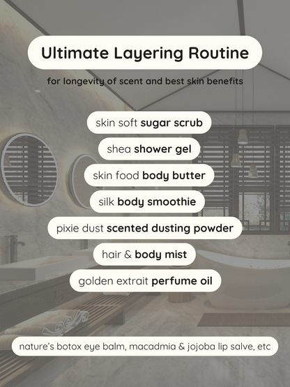 🪞 Perfect for Layering – Pair with our body butter, dusting powder, or body mist in the same fragrance for all-day scent.