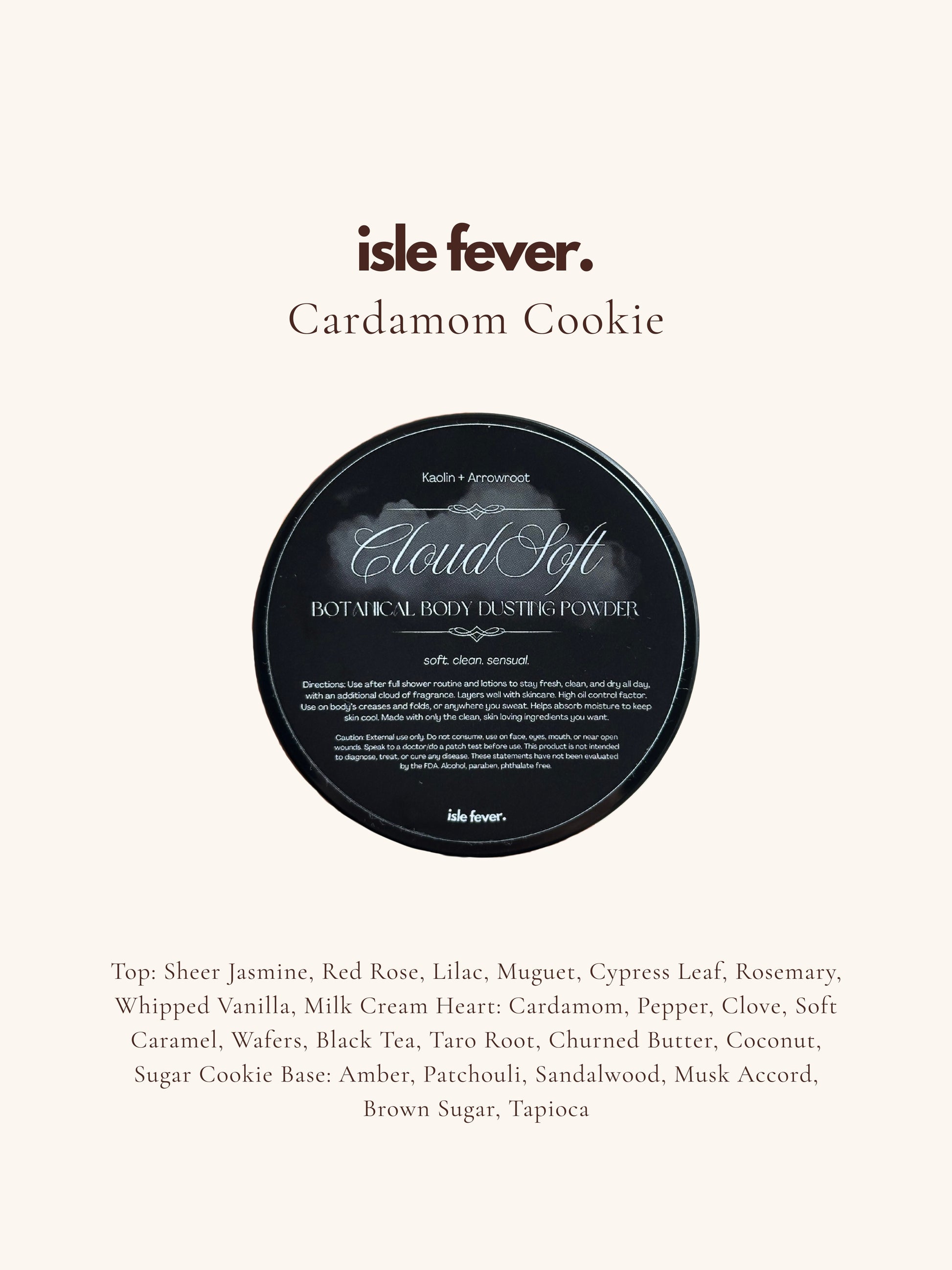Cardamom Cookie- sweet cardamom cream, sugar cookie, lilac, tonka bean, vanilla, rose, and white & pink peppers
