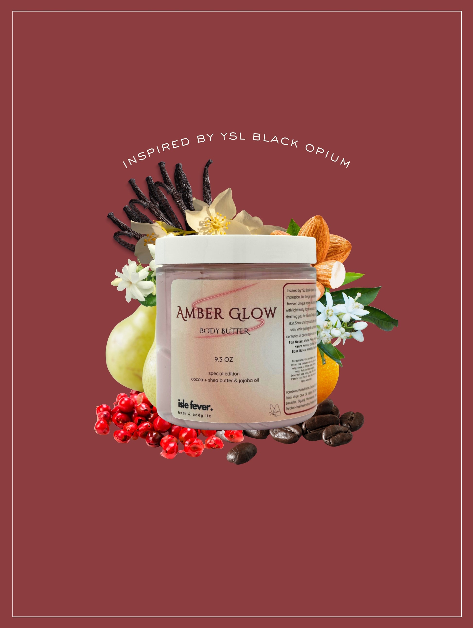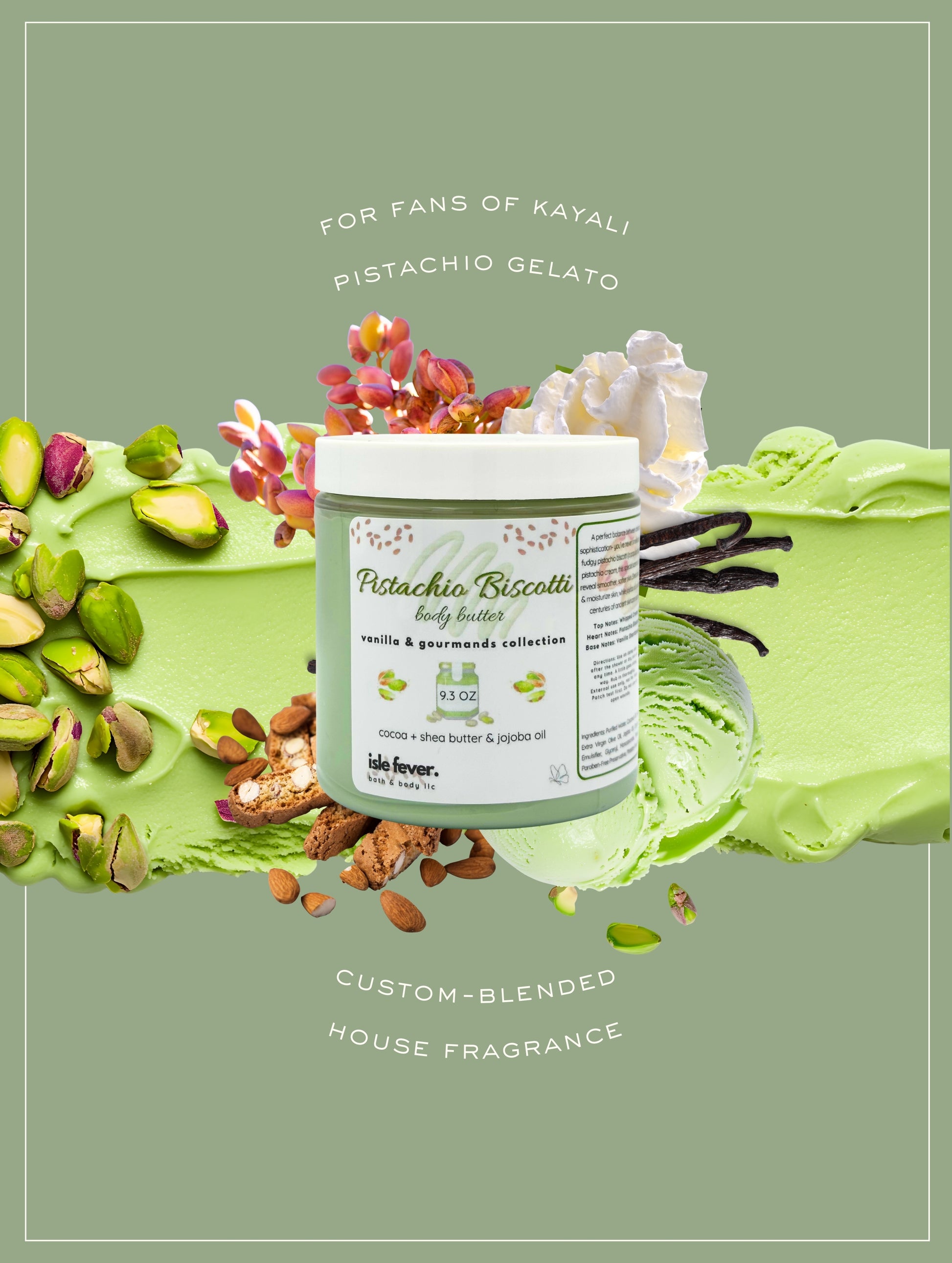 Ingredients: Purified Water, Coconut Oil, High Oleic Sunflower Oil, Cocoa Butter, Extra Virgin Olive Oil, Jojoba Oil, Organic Shea Butter, Sweet Almond Oil, Emulsifier, Glyceryl Monostearate, Stearic Acid, Cetyl Alcohol, Carbomer, Paraben-Free Preservative, Phthalate-Free Fragrance, Skin-Safe Color