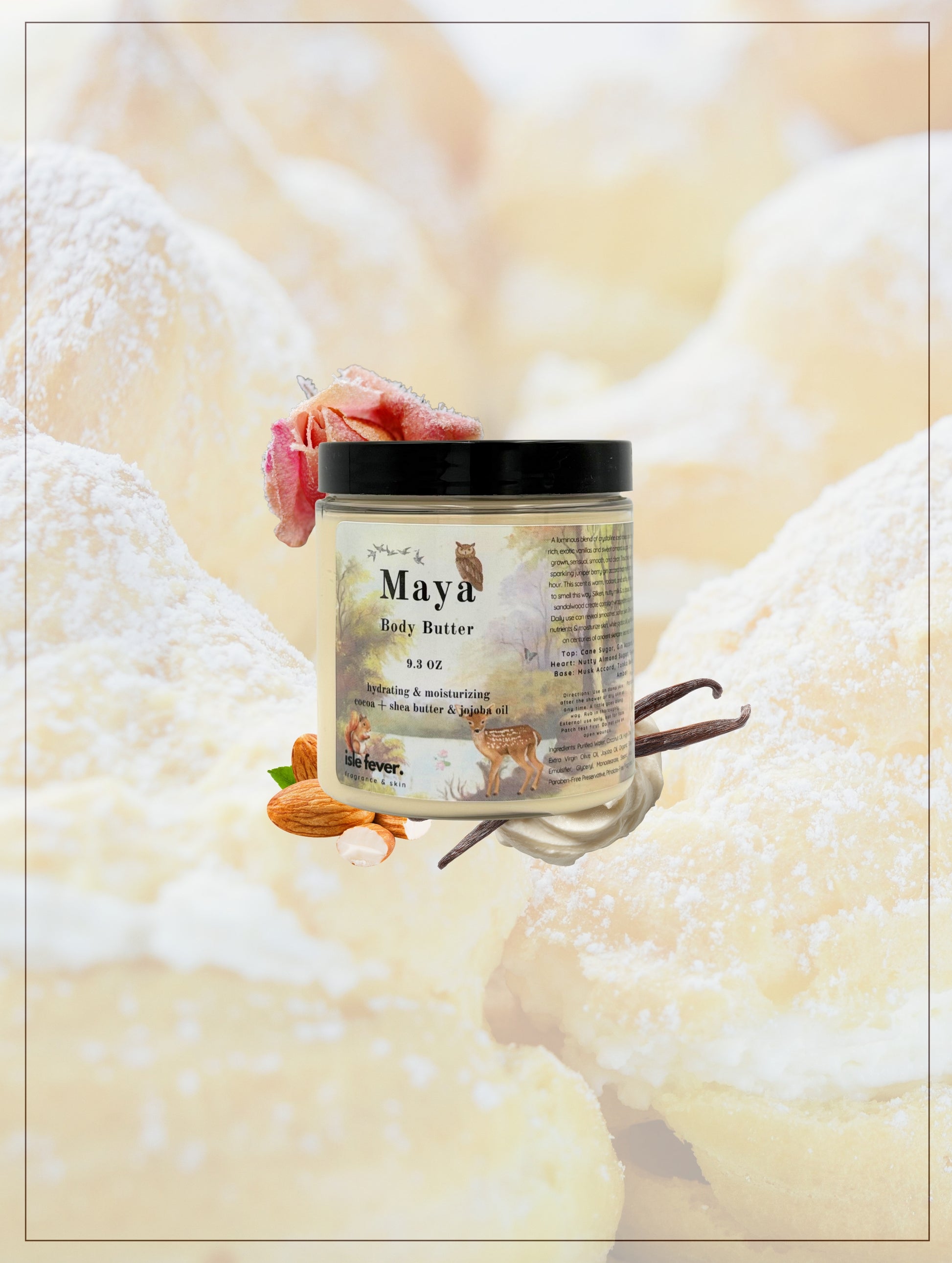 Infuse your skin with the natural aroma of a Goddess- a blend of alluring musks, earthy essential oils, and ribbons of jasmine and ozone open this scent. Tonka bean, amber, and sandalwood marry bergamot and saffron for a luxurious, exquisite dry down. This body butter is a rich, soft scent experience & homage to your inner Goddess.